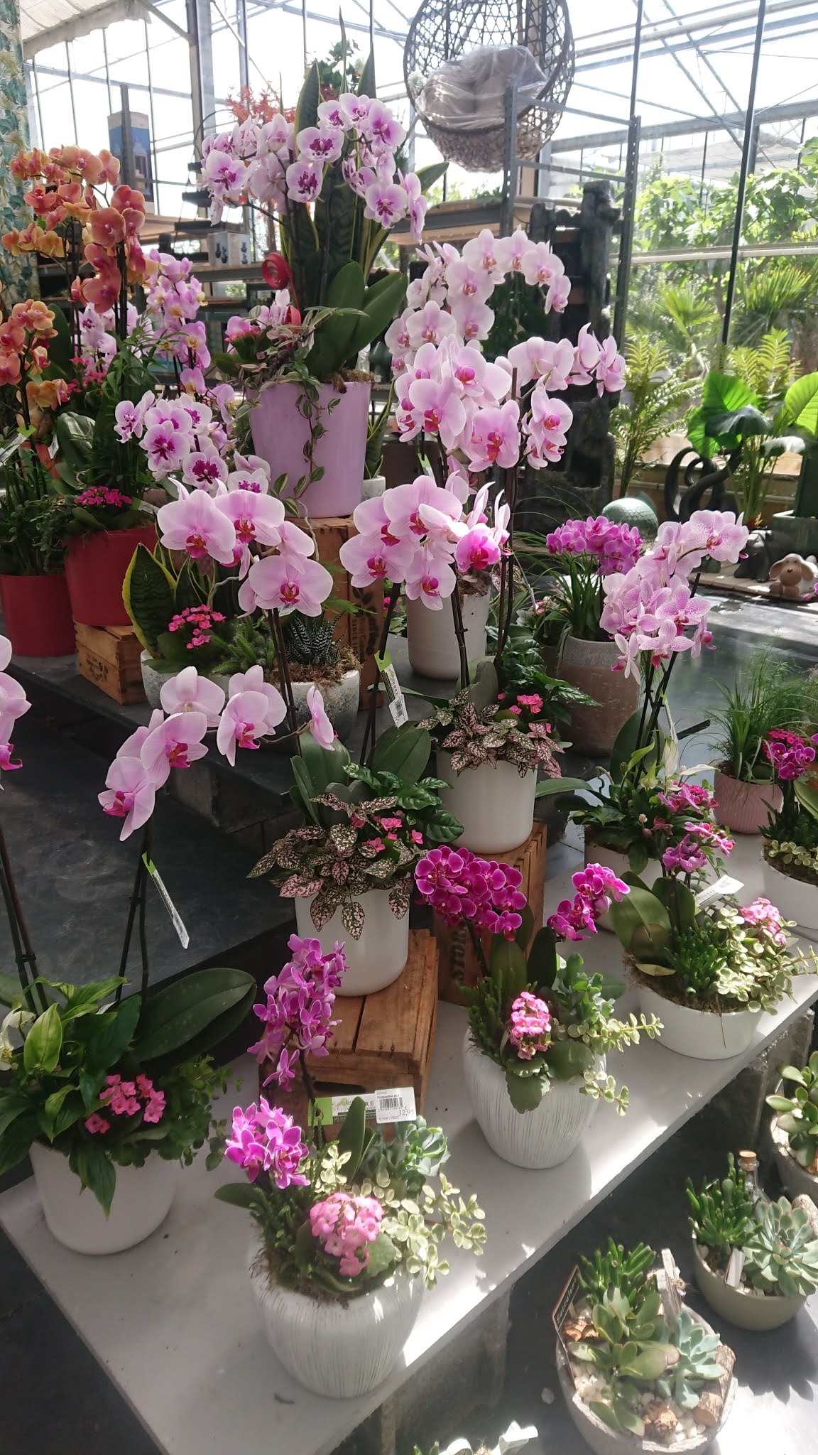 On est accueilli par des compositions qui donnent envie, comme toutes les autres fleurs et plantes en bonne santé, présentées de façon agréable... Le personnel n'est pas avare d'explications ou de conseils... En général, on repart avec plus de plantes que l'on était venu acheter !